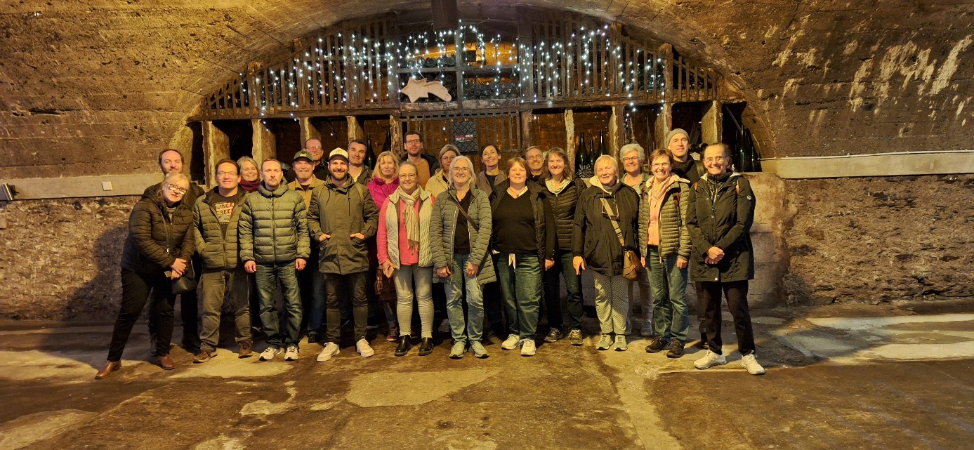 Im Gewölbekeller des Weingutes Axel Emert konnten wir am Ende der Führung ein Glas Riesling oder Traubensaft im Weingut Emert genießen und der Juniorchef, Nicolas Emert hat uns einen kurzen Einblick in die Arbeit des Winzers gegeben. Dieser Keller ist ein Teil des alljährlichen Mosel-Wein-Nachts-Marktes, der einzige unterirdische Weihnachtsmarkt in Deutschland.