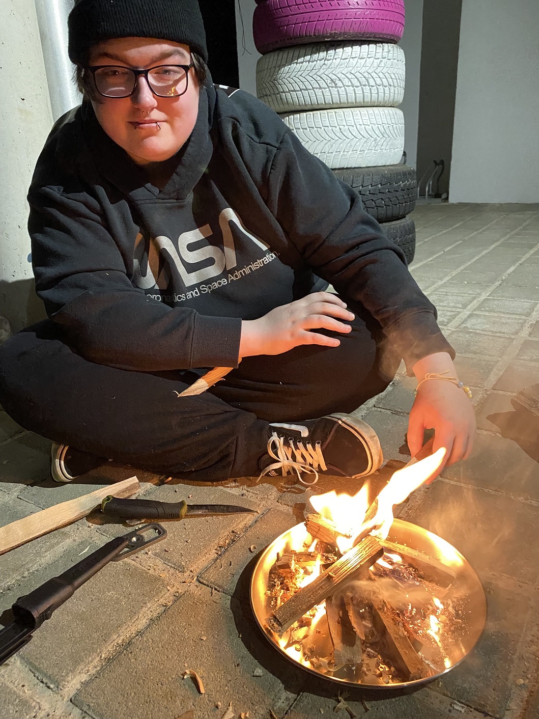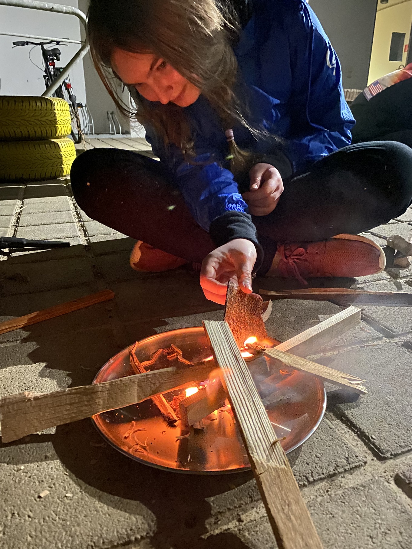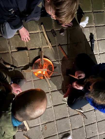 Der erste Ausflug startete Mittags und war geprägt von Regen und diesigem grauen Wetter. Wir führten Vertrauensübungen und Selbstwirksamkeitsübungen durch. Neben besinnlichen Spaziergängen, die zur Reflexion des Erlebten beitrugen, ging es gen Abend dann endlich ums lang ersehnte Feuermachen mit Feuerstahl und Zunder. Den Tagesabschluss gestalteten wir anschließend bei einem Lagerfeuer, selbstgemachtem Stockbrot und einem unfassbar leckeren, der Gruppe überantworteten selbstgemachten Eintopf ab. Kein Wunder, dass dieser Tag trotz des unangenehmen Wetters ein voller Erfolg war.