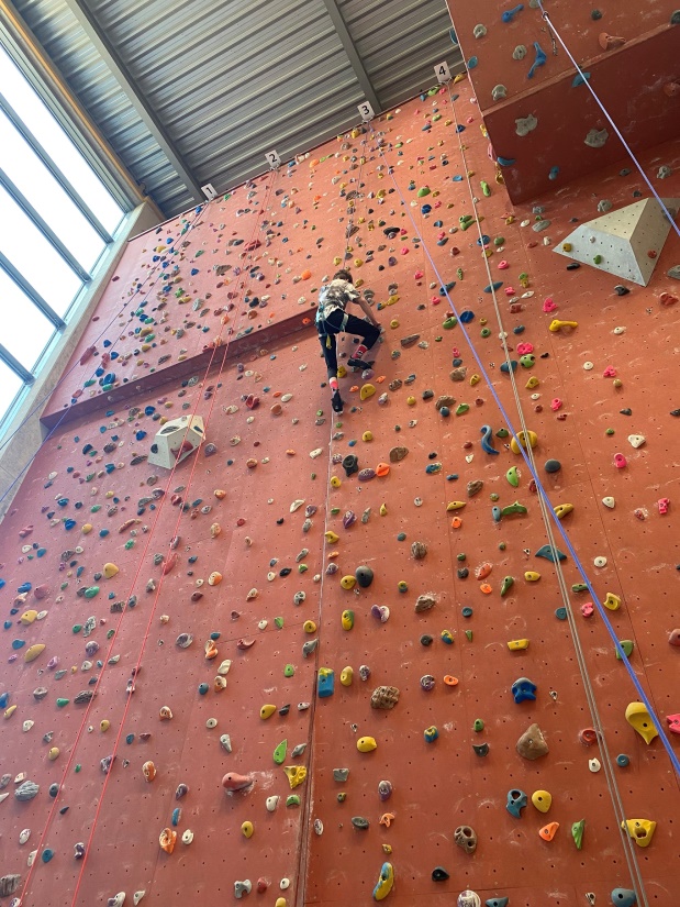 Der zweite Tag sollte schließlich gänzlich anders werden. Wir brachen morgens nach Luxembourg, Echternach, auf und meldeten uns dort in der Jugendherberge zum Klettern an. Ein zusätzlicher Trainer, Milan, empfang uns freundlich, und nach einigen Sicherheitsinstruktionen konnten wir bereits auf die Matte an die Wand. Stets die Sicherheit im Blick und unter Begleitung der Teamenden, gelang es den Teilnehmenden hier Verantwortung füreinander zu übernehmen und sich abzusichern. Viele sprangen auch an diesem Tag über ihren Schatten und konnten neue Seiten an sich entdecken. Und natürlich machte es auch einen gehörigen Spaß.