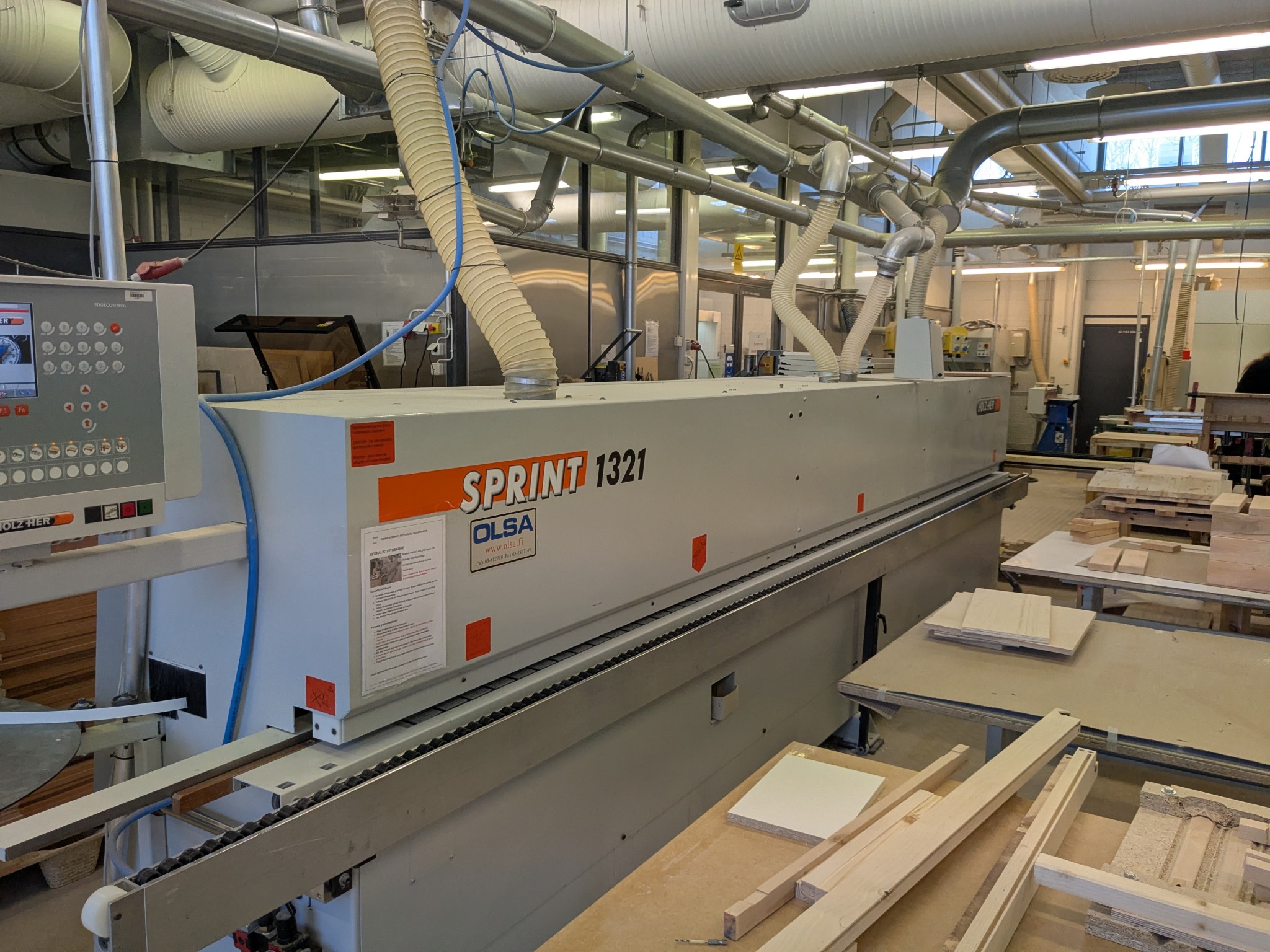Amelie und Manuel sind in der ebenfalls sehr modernen Luovi-Schreinerei, etwas außerhalb des Hauptgeländes, eingesetzt. Nach einer Einweisung in die verschiedenen Maschinen erhielten die beiden ihren Arbeitsauftrag: ein Couch- Arbeitstablett.