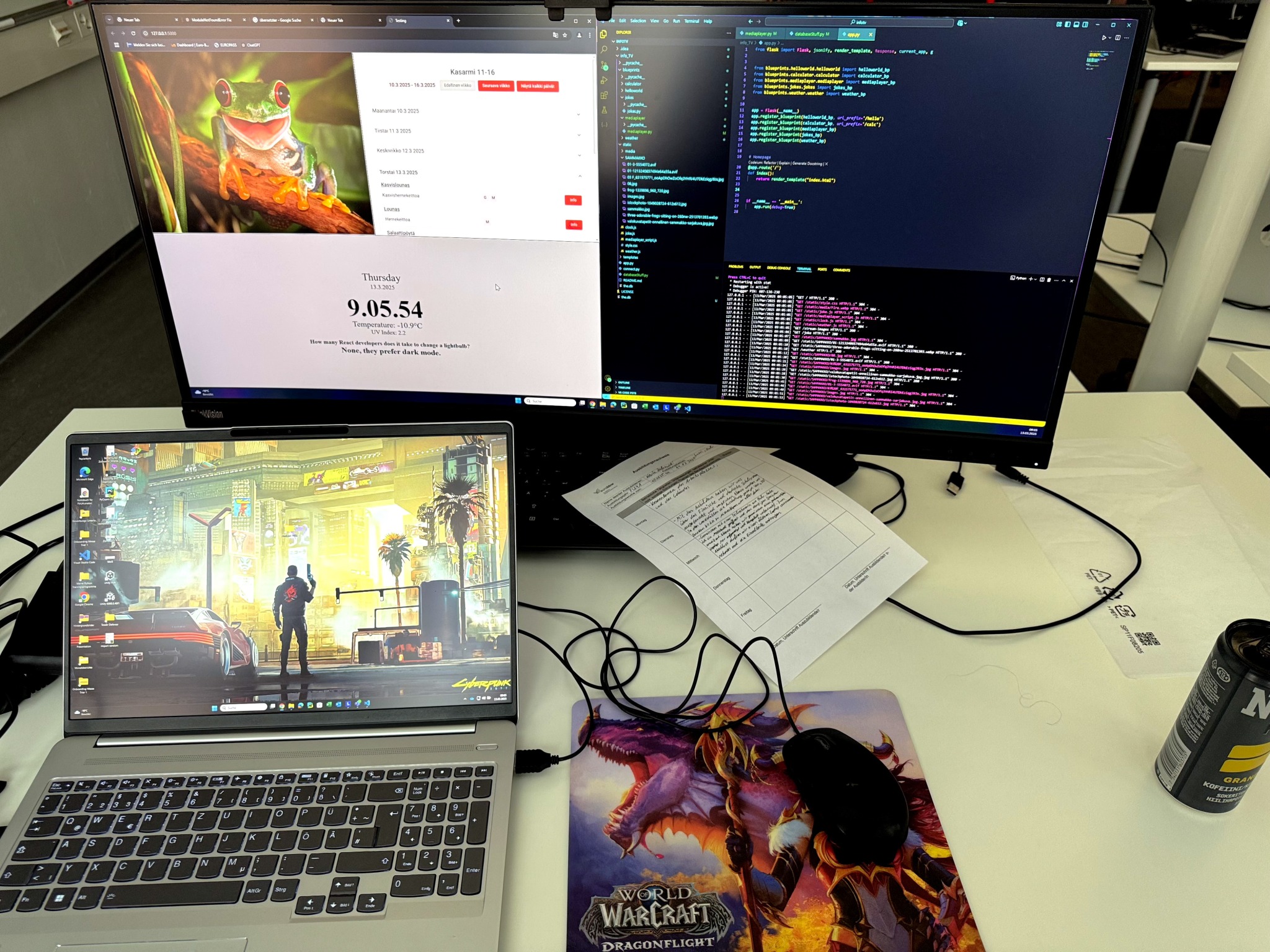 Jonas und Kewin sind im modernen IT-Bereich im Hauptgebäude des Luovi eingesetzt, der sogar mit 3D-Druckern und Mikroskopen ausgestattet ist. Dort arbeiten sie an einer hausinternen Internetseite, die auf den Bildschirmen der Einrichtung angezeigt werden soll, oder führen Systemwiederherstellungen an verschiedenen Laptops durch.