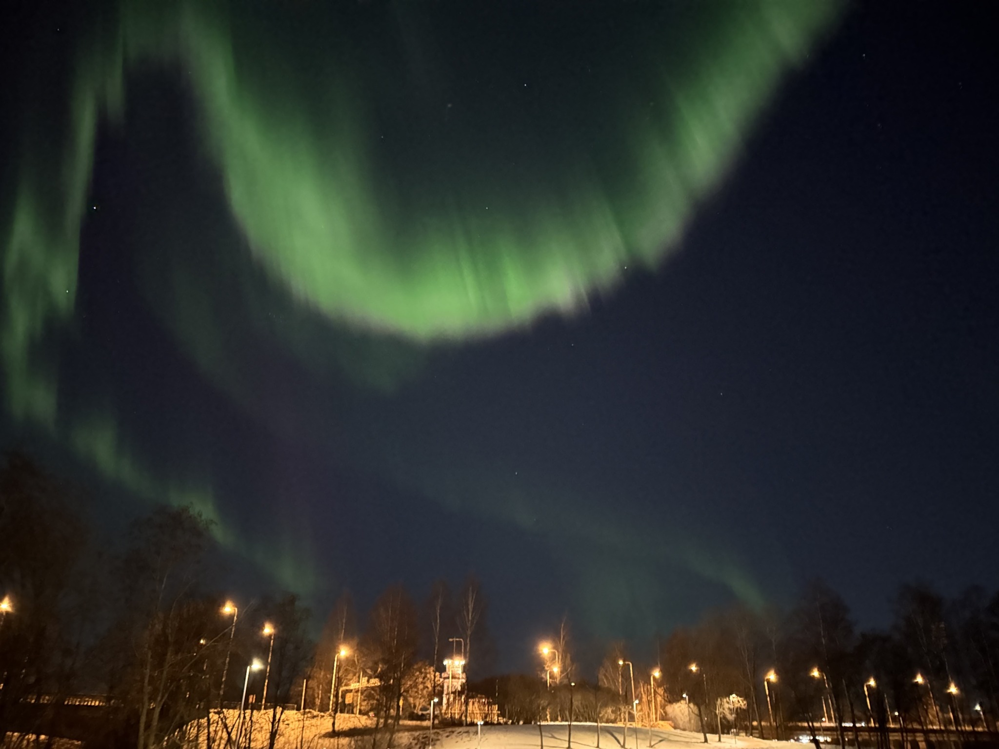 In ihrer Freizeit hat die Gruppe auch schon einiges unternommen und erlebt: Gemeinsam mit Mitarbeitenden und Teilnehmenden des Luovi haben sie an einem vereisten Fluss Würstchen gegrillt, waren in Rovaniemi im Arktikum und am Polarkreis, wo sie auch dem Weihnachtsmann einen Besuch abgestattet haben, und in der Sauna. Aber die beiden größten Highlights waren das Eishockey-Spiel der Mannschaft aus Oulu gegen Helsinki sowie das unglaubliche Glück, die Nordlichter zu sehen.