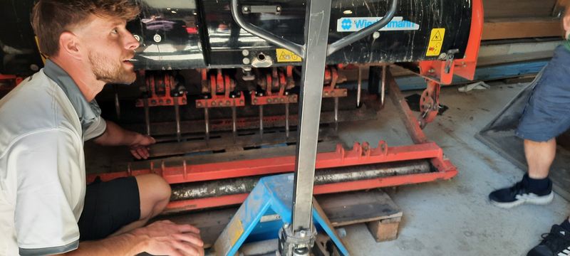 Mark leitet seit Januar als Headgreenkeeper die Grünflächen auf dem Golfplatz und hat unsere Gruppe während einer dreistündigen Führung über die Instandhaltung, Bewirtschaftung und Pflege der Rasenflächen aufgeklärt. Zu den Aufgaben eines Greenkeepers gehören nicht nur Säen, Mähen unterschiedlicher Rasenhöhnen (siehe Fotos) und Vertikultieren, auch die Auswahl der richtigen Gräser, deren Düngung und die Regeln des Spielbetriebs gehören zu seinen Spezialkenntnissen. Beim Golf-Sport erfordert z. B. das Setzen der Fahnen ein hohes Maß an Erfahrung, da die Fahnenposition den Schwierigkeitsgrad des Golfplatzes beeinflusst. Auch mit verschiedenen Maschinen und deren Pflege muss er sich auskennen.