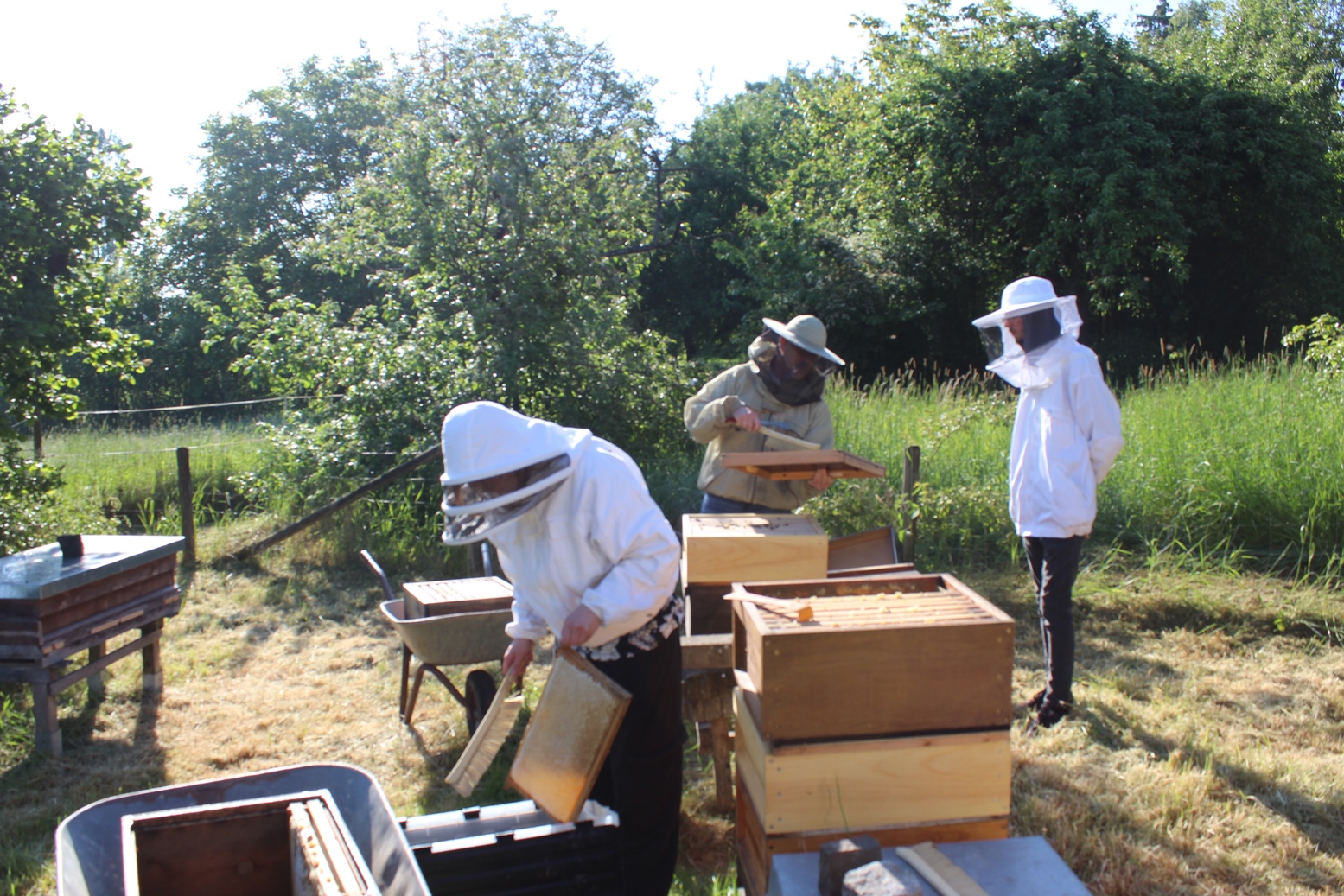 Auch wenn seit dem letzten Winter nur noch vier Bienenvölker auf dem Gelände leben, war die Honigernte ein voller Erfolg – und ein schönes Gemeinschaftserlebnis.