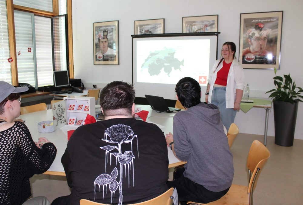 Im Rahmen eines Projekts namens „Story & Snack“ hat unsere Teilnehmende Sarah ihr Können unter Beweis gestellt und Wissenswertes über die Schweiz vorgestellt. Mit einer gut durchdachten und klar strukturierten Präsentation nahm sie alle Interessierten sowohl visuell als auch kulinarisch mit auf eine Reise durch das Alpenland.