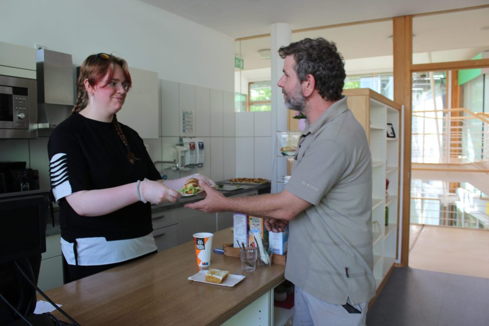Unser Kiosk-Team hatte ebenfalls passend zum Thema eine Auswahl an typischen Schweizer Snacks vorbereitet, die für großen Andrang sorgten. Beliebt waren nicht nur die leckeren belegten Käse-Laugenstangen, sondern auch der selbst gebackene Rüblikuchen sowie das klassische Bircher Müsli.