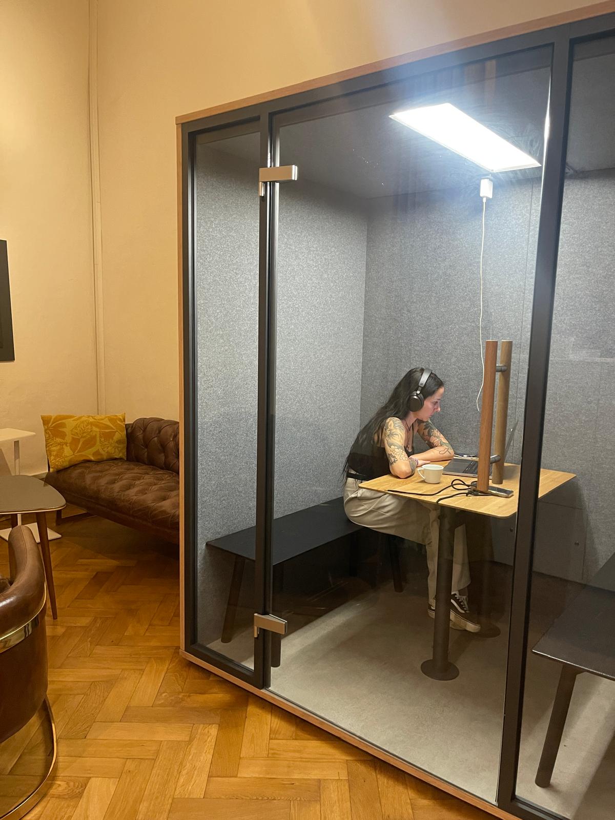 Julias Arbeitsplatz befand sich bei der Werbeagentur Frida Grün – Webdesign und SEO, an einem eigens für sie eingerichteten Co-working Space in einem sehr prachtvollen Gebäude. Die Agentur unterstützt Selbstständige und Unternehmen bei der Erstellung und Optimierung ihrer Business Webseite.
