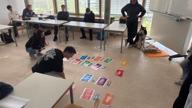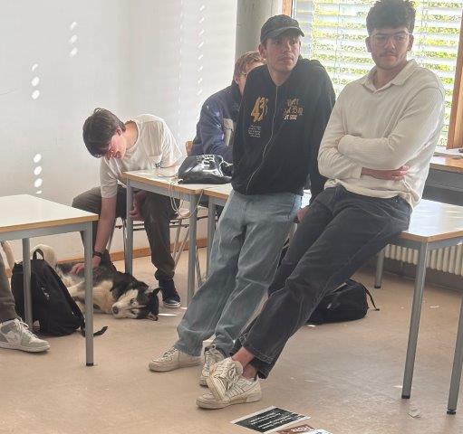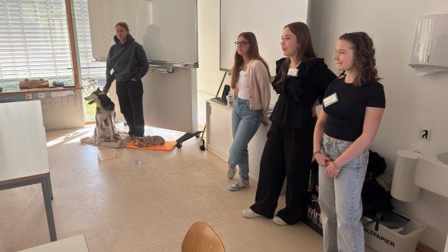 Am Donnerstag, 8. Mai 2025 war es soweit. Die vier Schülerinnen der TSS-Bit kamen in Begleitung von Husky „Rocky“ und dem kleinen „Manfred“ in den ersten beiden Schulstunden in unsere Berufsvorbereitungsklassen E und C. Dies unter der Leitung der beiden Klassenlehrer Herrn Ludolphy und Herrn Prinz.