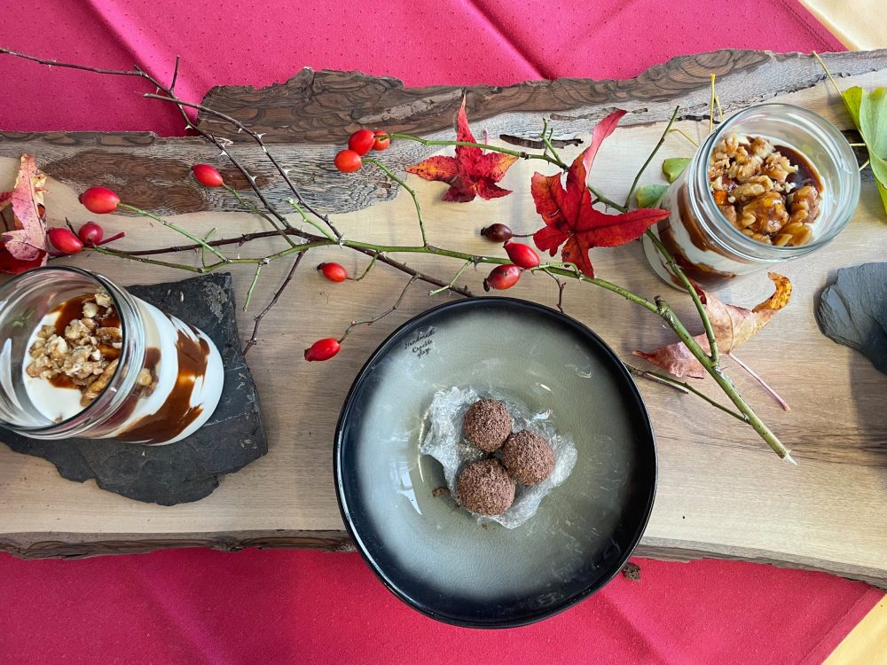 In der Praxisphase arbeiteten die Teilnehmenden an Stationen, an denen sie Nüsse rösteten, hackten, mahlten oder karamellisierten. Besonders kreativ wurde es bei der Zubereitung eigener Gerichte: Entstanden sind köstliche Nuss-Pestos, Quark-Joghurtspeisen mit karamellisierten Walnüssen und kleine Energy Balls. Beim gemeinsamen Probieren konnten alle stolz auf ihre Ergebnisse sein.