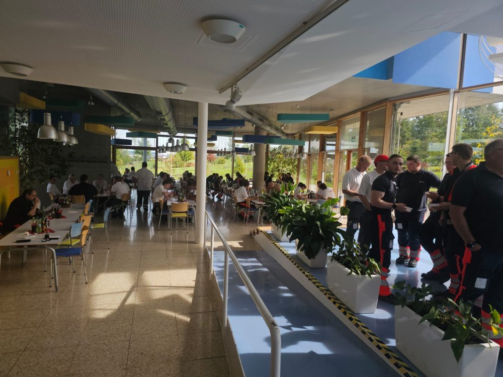 Nach der erfolgreichen Übung trafen sich die etwa 100 teilnehmenden Personen im Euro-BBW, wo ihnen zunächst die Mensa für ein gemeinsames Mittagessen und anschließend der Konferenzraum für wichtige theoretische Unterrichtseinheiten zur Verfügung standen.